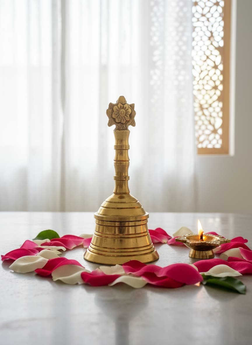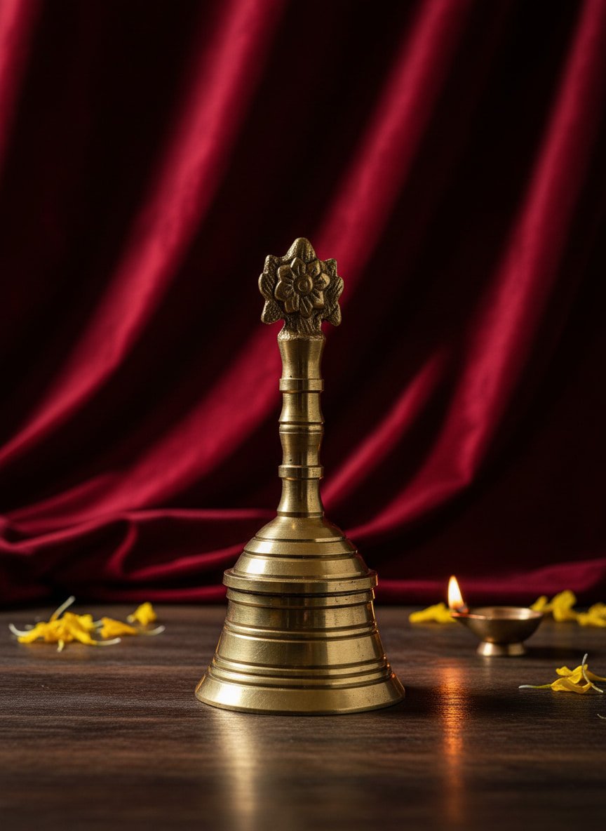 Enhance your spiritual rituals with this handcrafted Traditional Brass Bell (Ghanti), designed for pooja, aarti, and worship. Made from high-quality brass, this bell produces a pure, resonant sound that invites divine blessings and purifies your surroundings. Perfect for use in temples, home pooja rooms, and spiritual ceremonies, it symbolizes the presence of the divine and creates a sacred atmosphere. Ideal for daily prayers or special occasions, this bell is a must-have for any worship space.