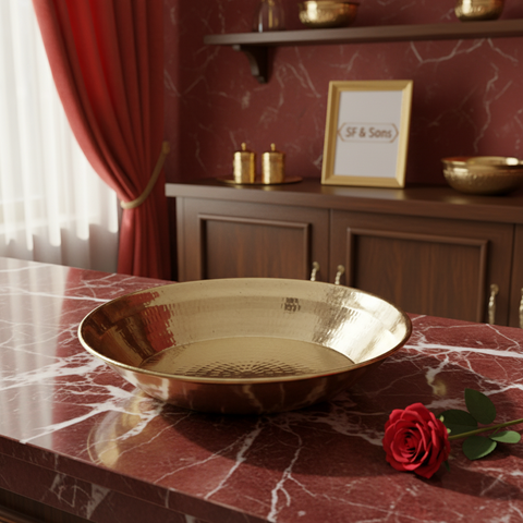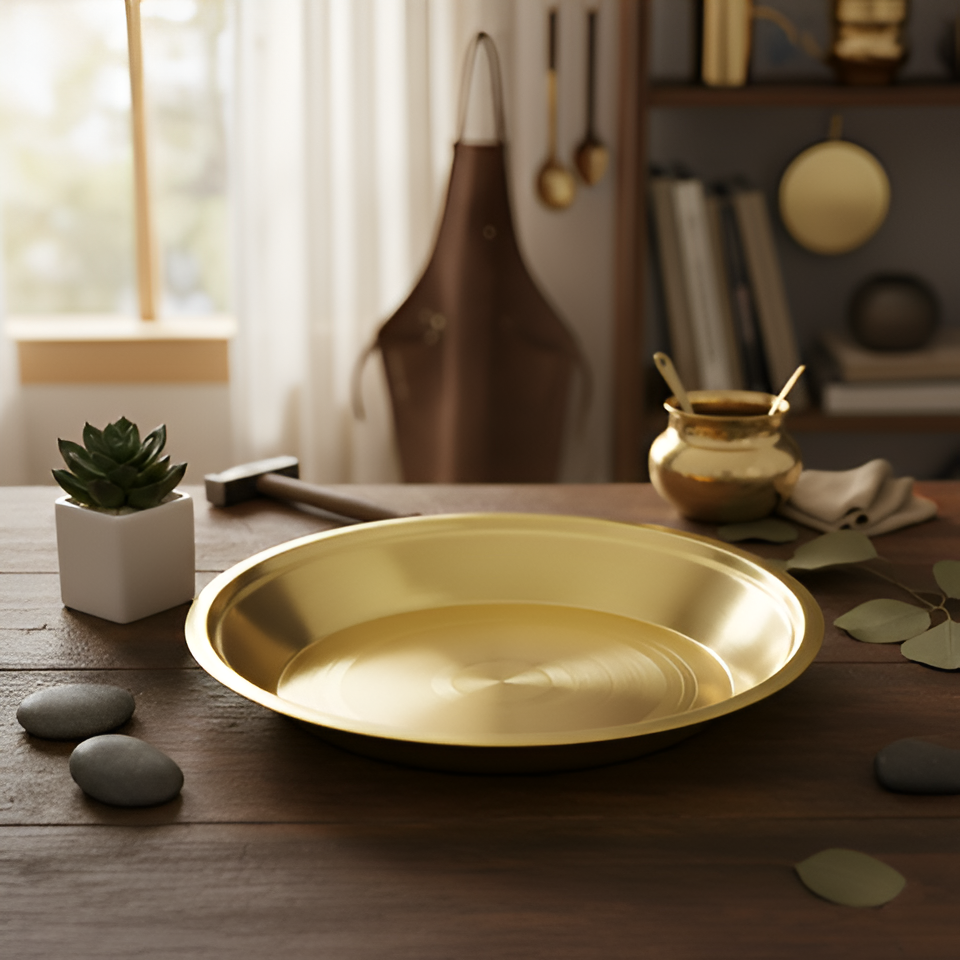 Experience the timeless elegance of this handcrafted brass parath, a traditional dough-kneading platter that enhances your kitchen’s authenticity. Its beautifully hammered surface combines aesthetic appeal(dough).