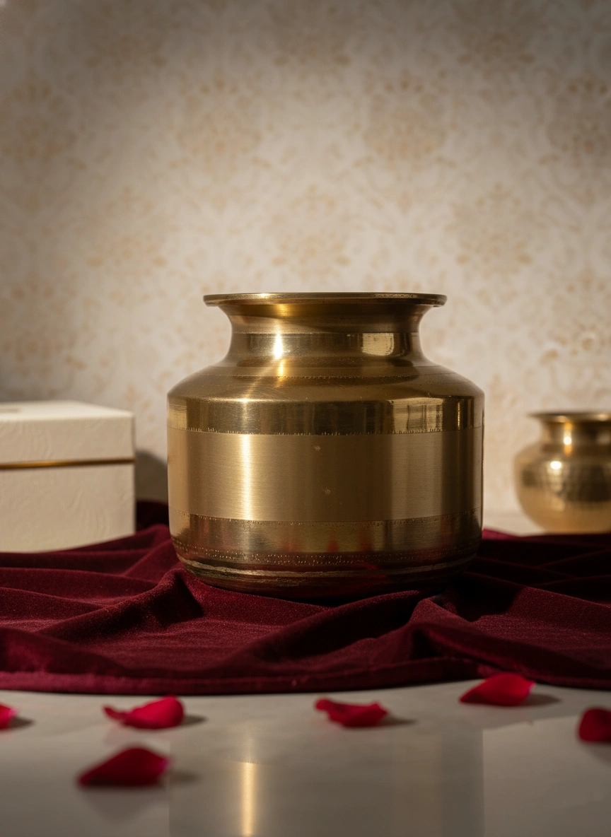 Elevate your special occasions with the SF Brass Pot, a premium quality pot crafted from 100% pure brass. Designed for both aesthetic appeal and lasting durability, this glossy brass pot adds a touch of elegance to any space. Perfect for traditional ceremonies, Indian rituals, or as a decorative brass pot, it is a versatile piece that combines beauty and functionality.