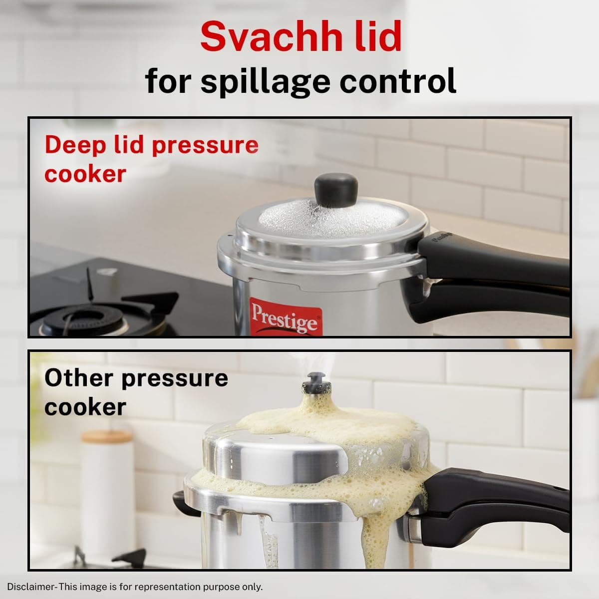 Its innovative Svachh deep lid design helps control spillage, keeping your kitchen cleaner and reducing messy overflows. The sturdy outer lid locking system provides safety and convenience during use.